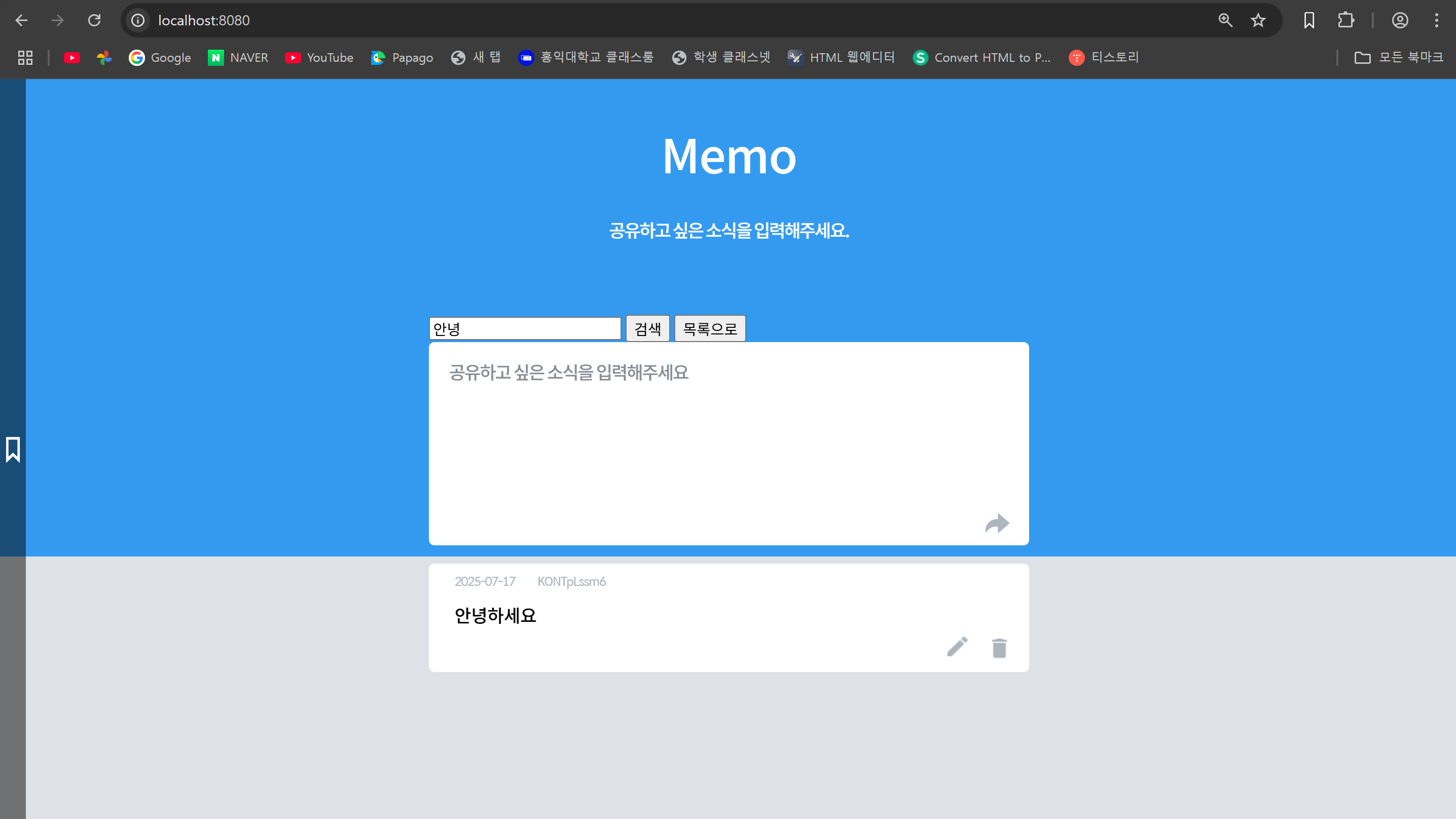 Query String을 활용한 검색 API와 프론트엔드 연동을 통해 키워드 기반 메모 조회기능을 추가했습니다.